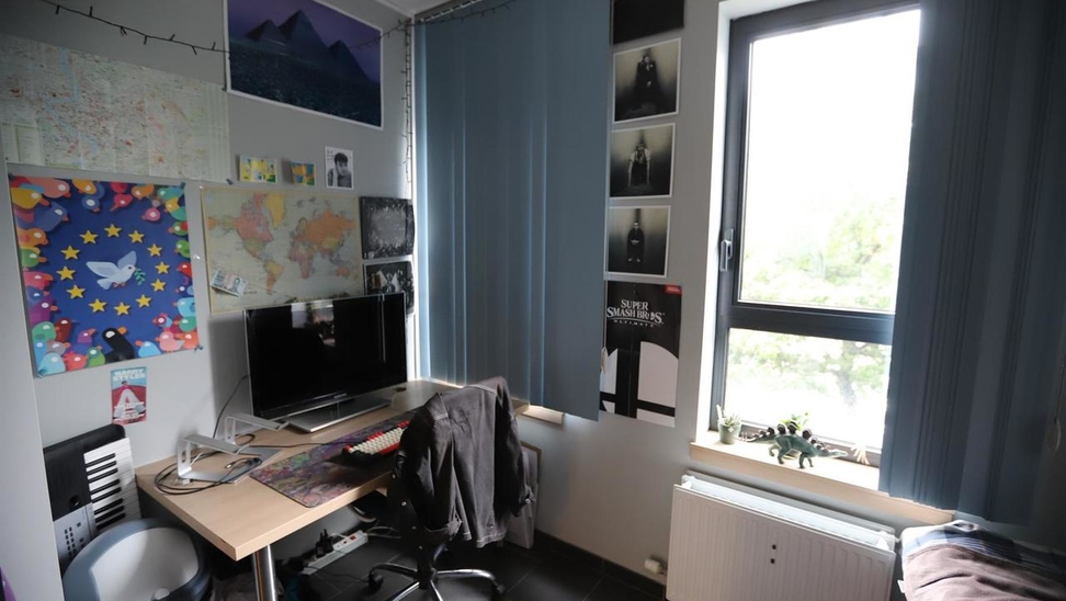 Studio/ duo-studio in een trendy en uniek nieuwbouw/renovatieproject op de Paardenmarkt. Er werd gekozen voor een moderne en degelijke afwerking met respect voor authentieke elementen. De studio is bemeubeld met een eettafel, bed, bureau, stoel, kleerkast en boekenkast. Geen matras & huisraad aanwezig. Al de kosten inbregrepen in de prijs, behalve elektriciteit. Centrale verwarming. Bijkomende huurder: + 50 EUR vaste kosten.